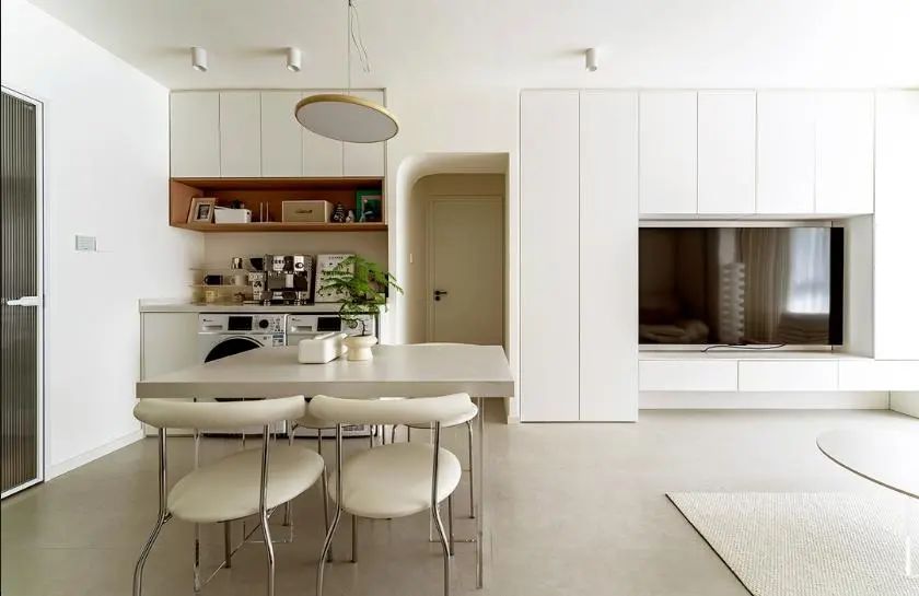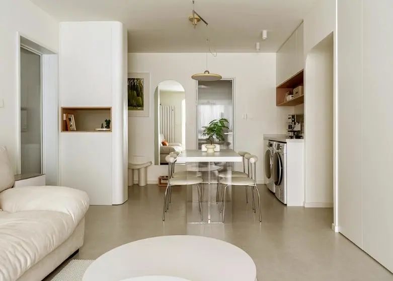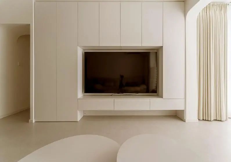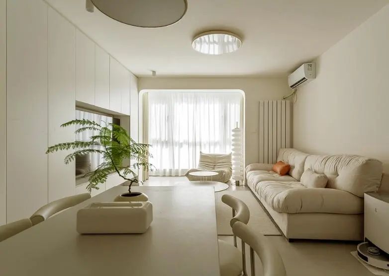 客厅以治愈系奶油色为主,营造温馨舒适居家氛围。