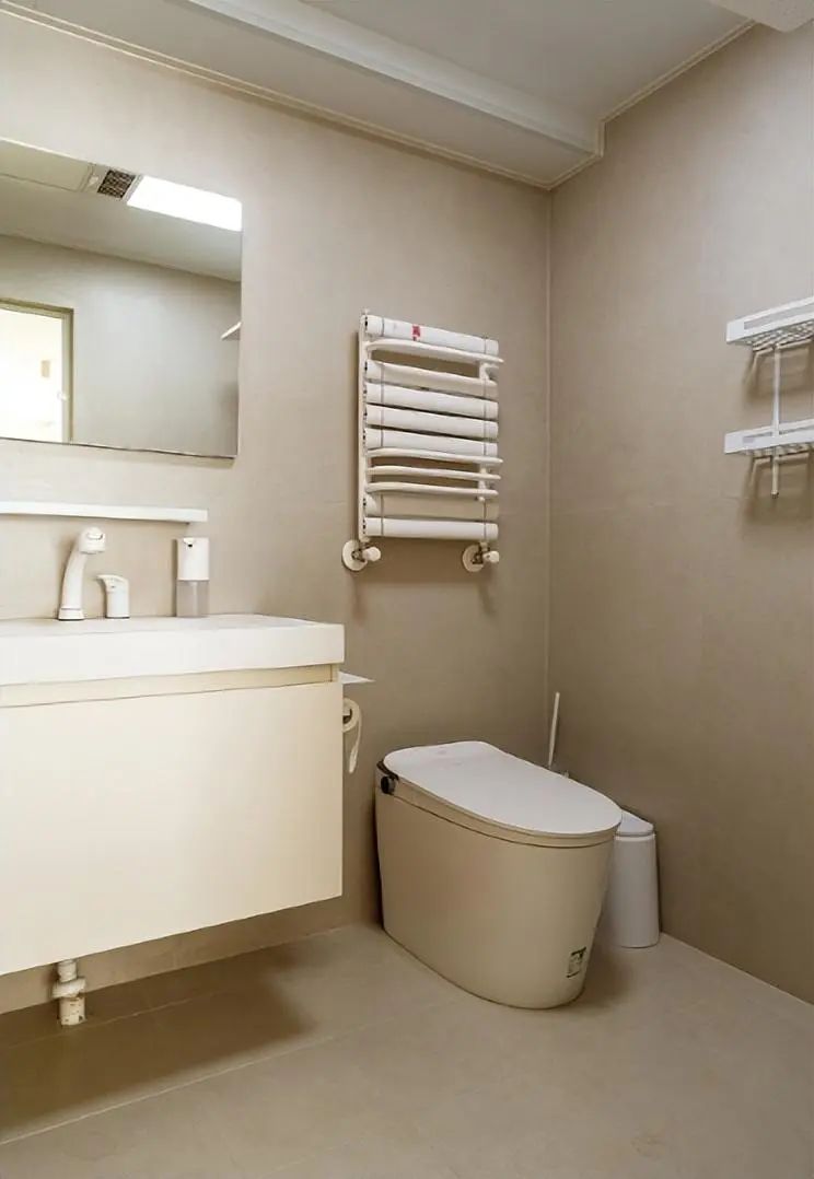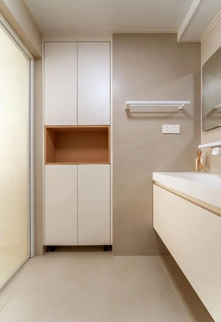 卫生间不是很大,依旧是奶油色为主,没有过多的装饰和造型,给人感觉干净舒适