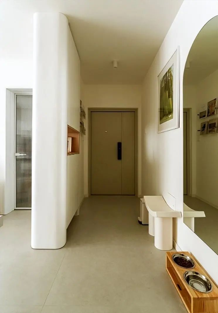 玄关做了延伸设计,同步设计隔断柜,打造独立玄关空间的同时,又增加了收纳空间。