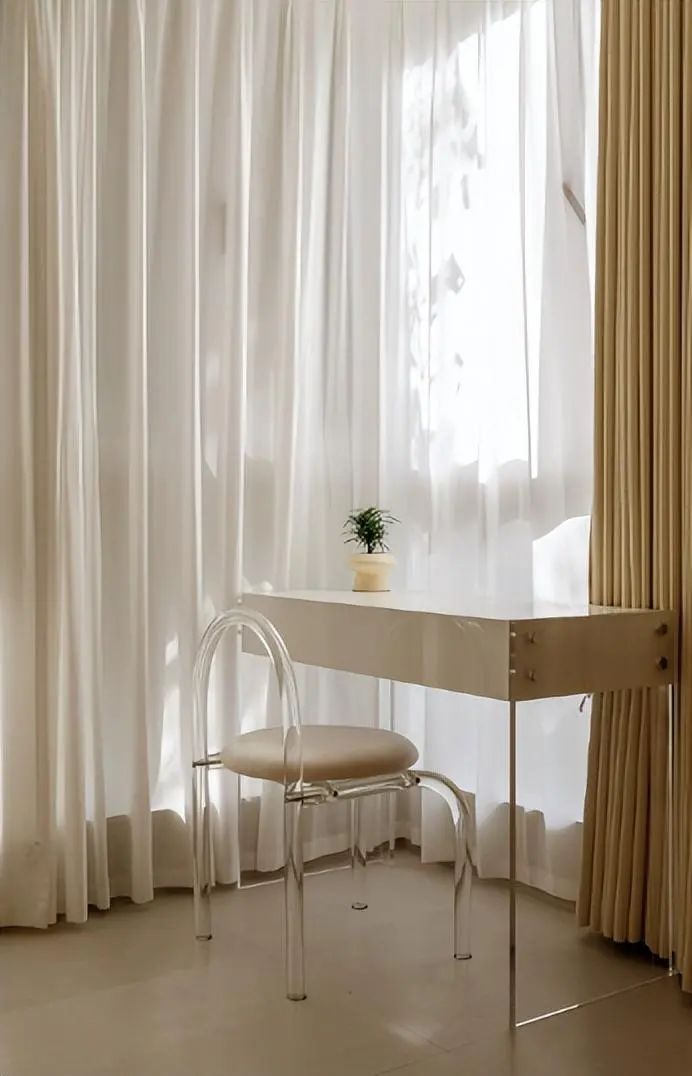 阳台,家中的一角,满足日常梳妆需求,同时简洁轻盈的设计,又营造出柔和惬意的休闲氛围感。