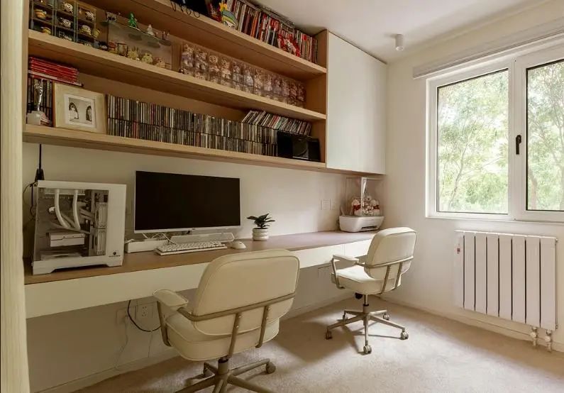 书房,2.5米的超长书桌,日常两人办公学习都足够
