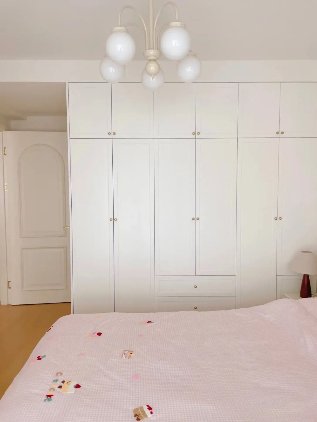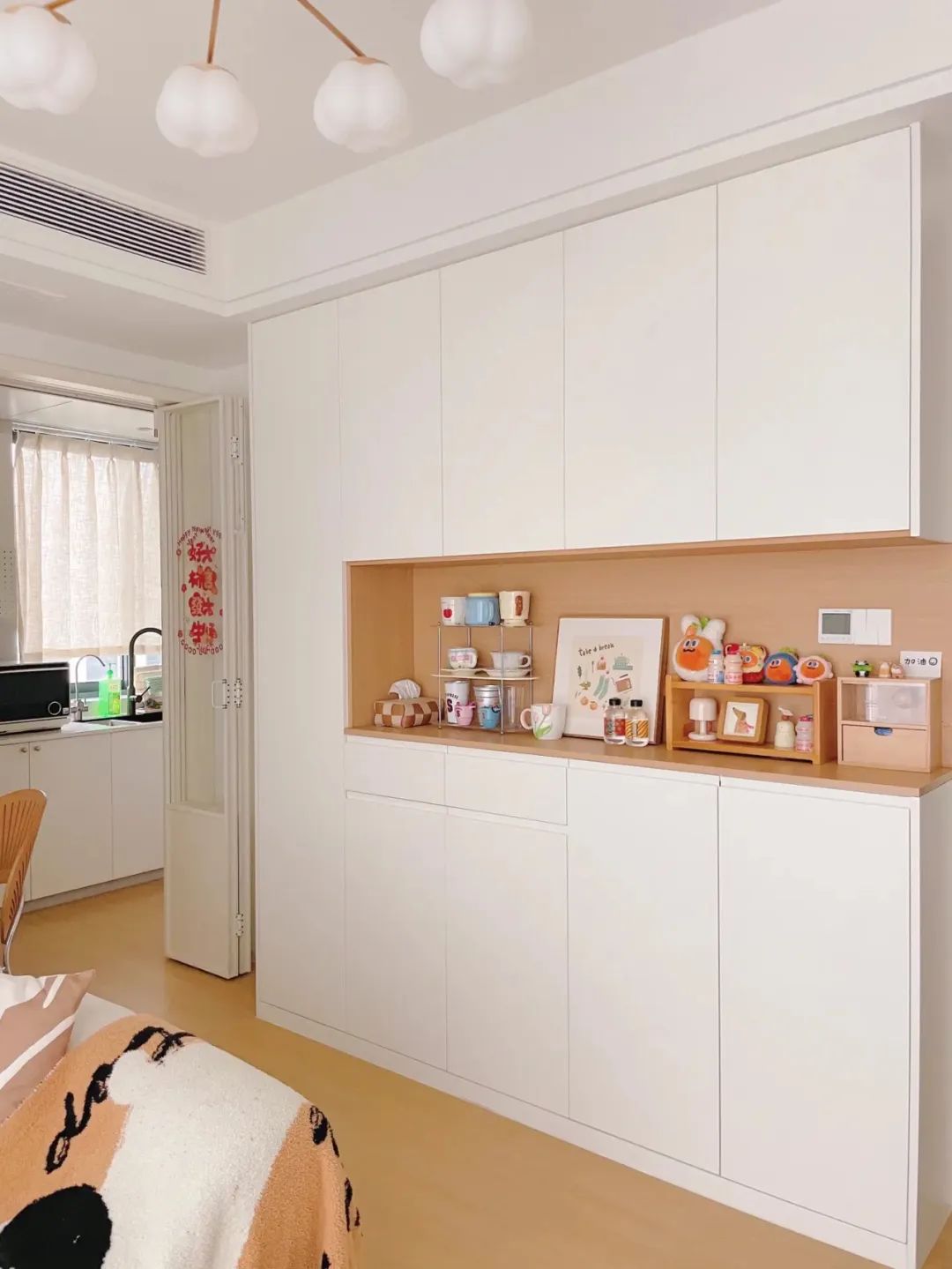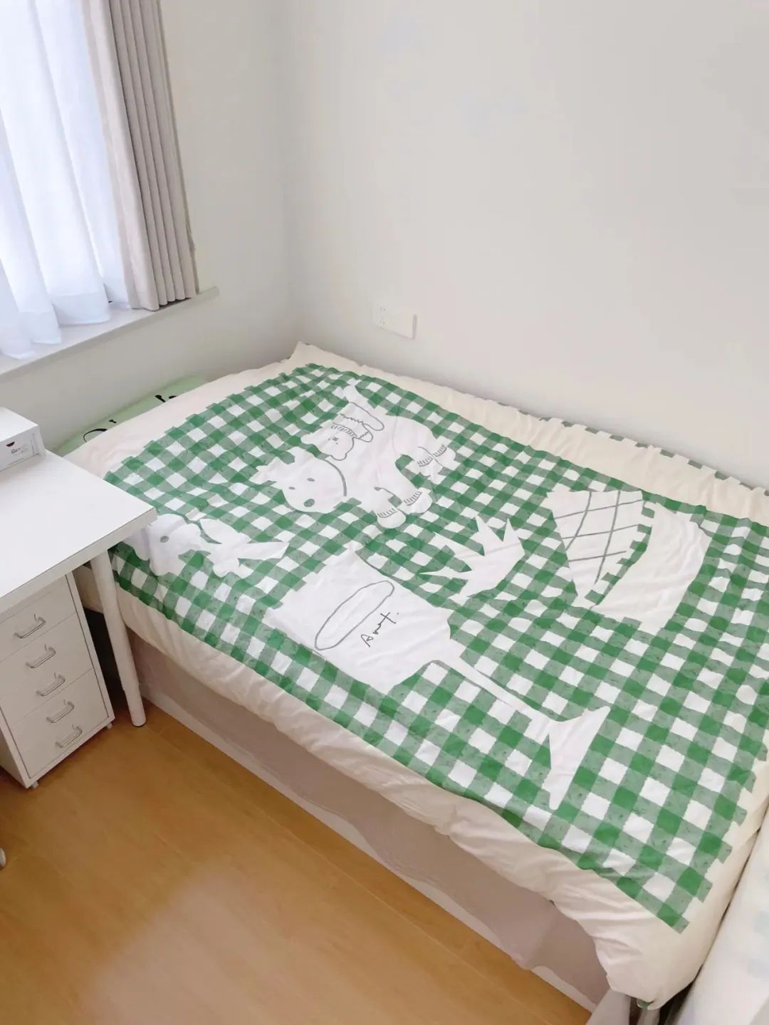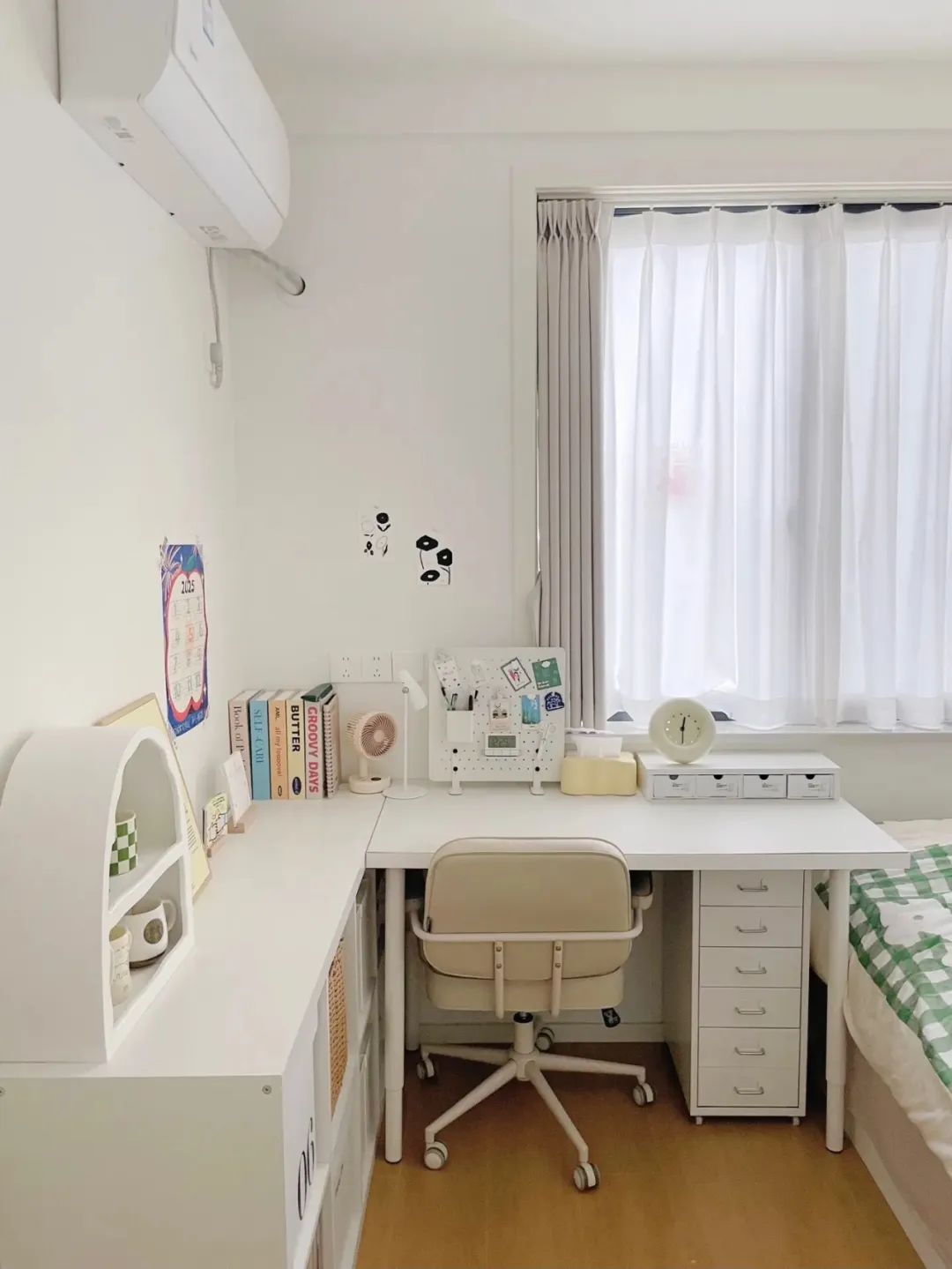 7平米的小卧室布置了书桌、抽屉柜和八格柜,放了一张一米二的小床
