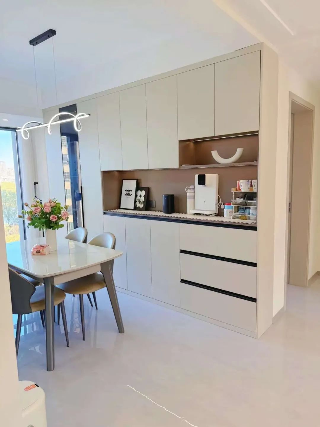 餐厅开间2.35米宽,餐边柜0.35米宽。