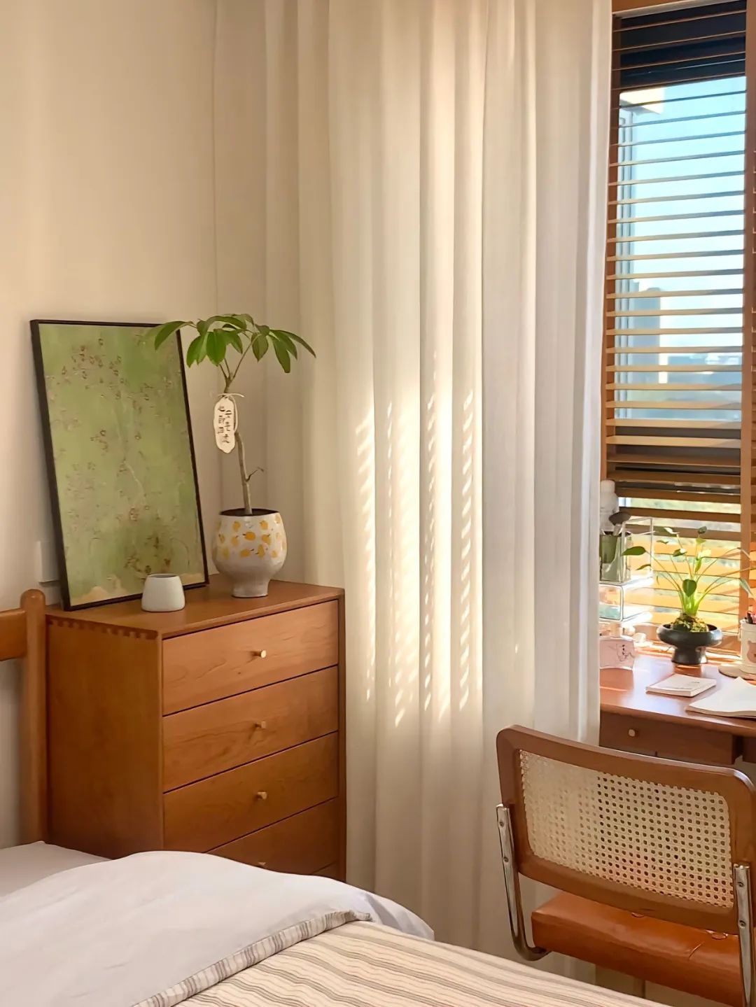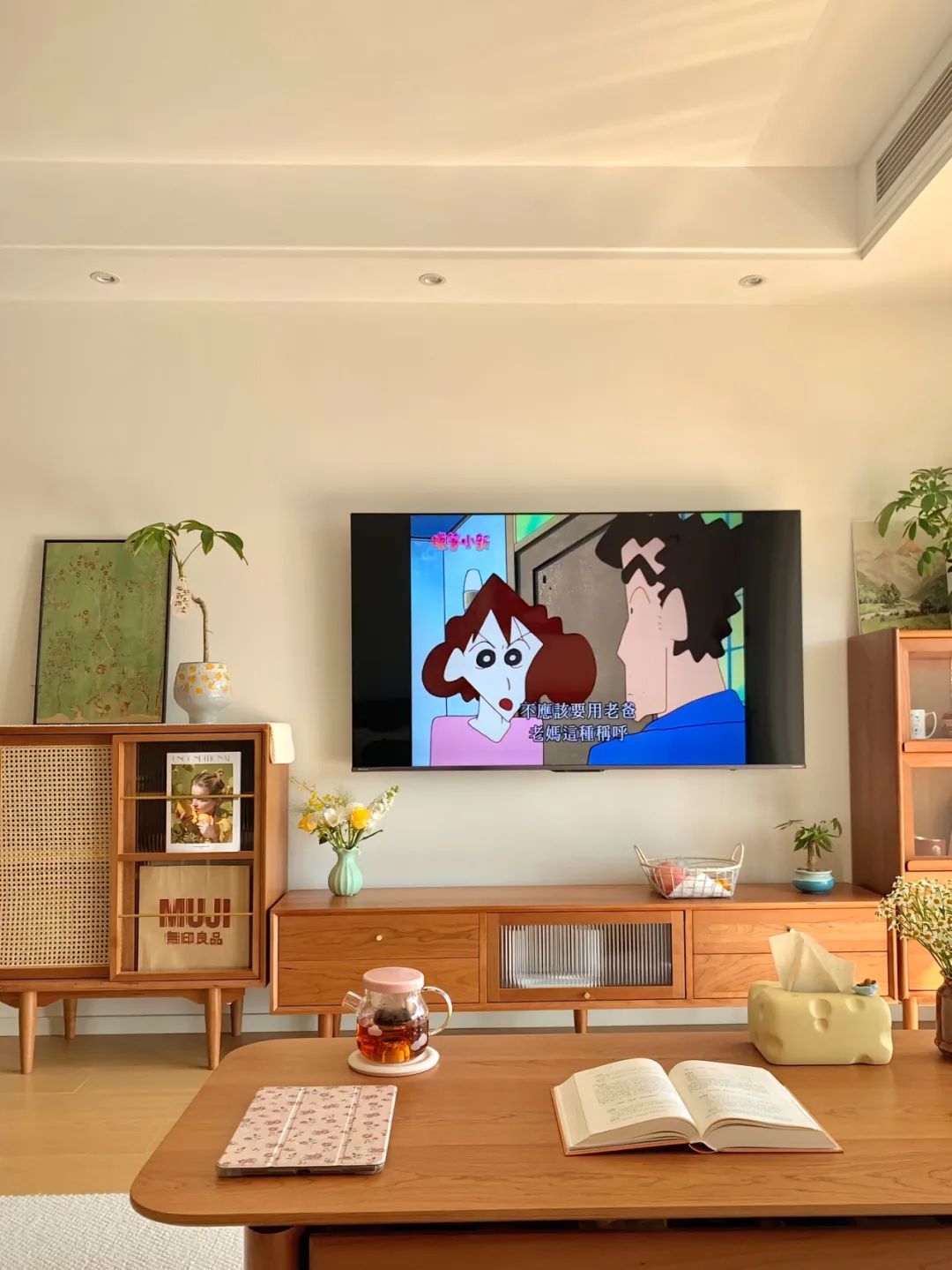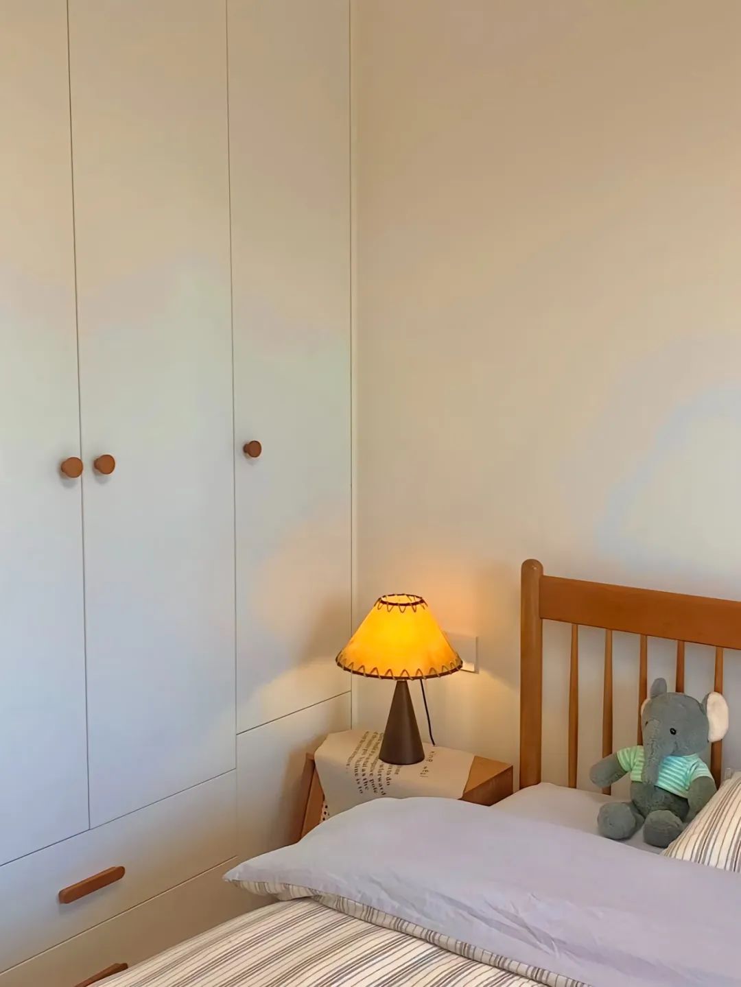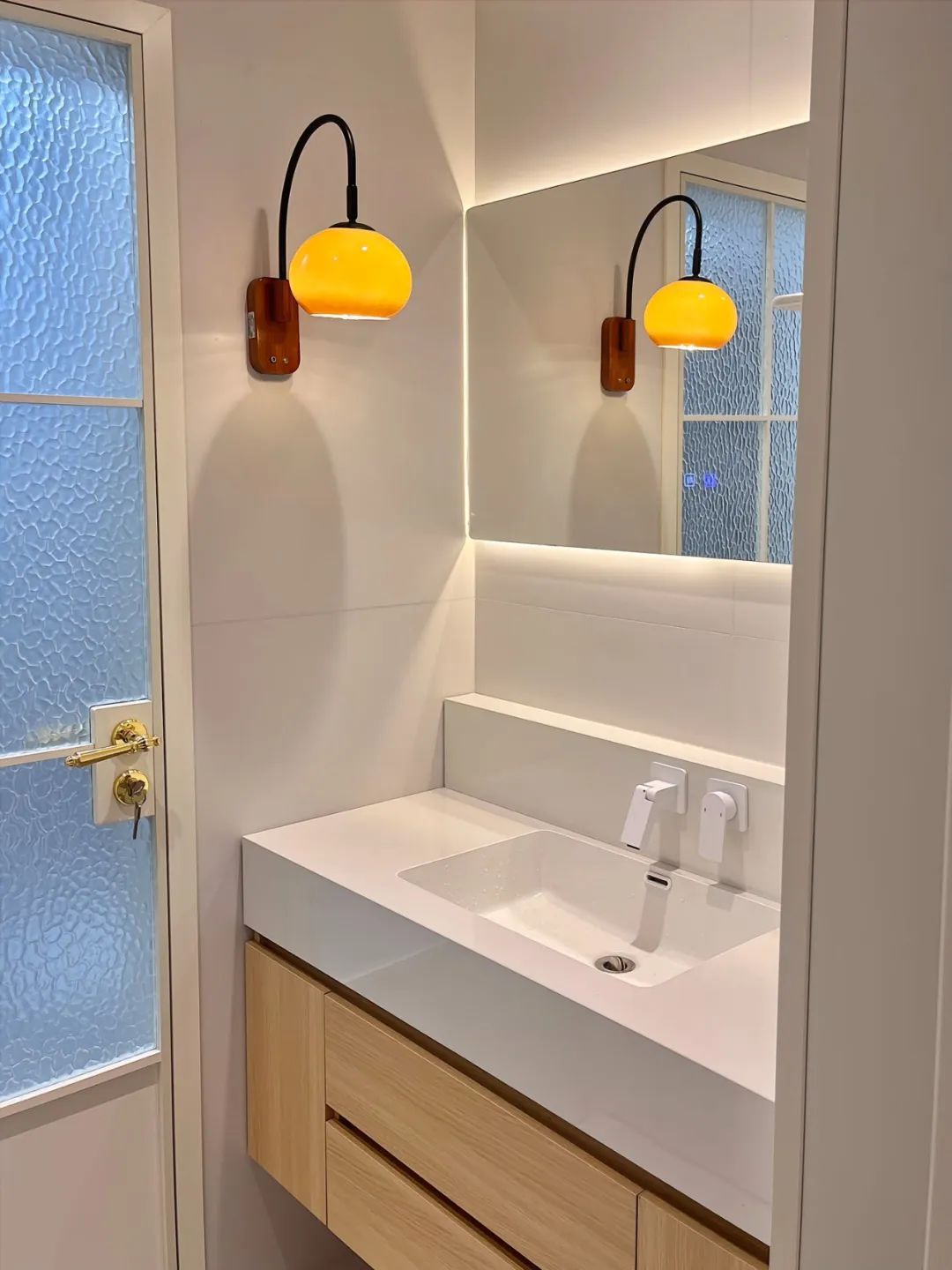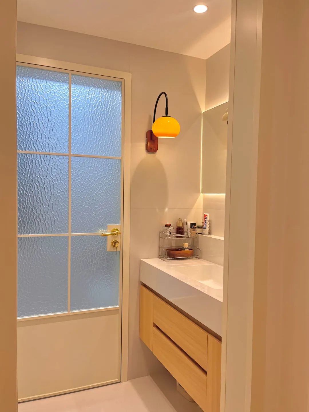 干湿分离原木风卫生间,奶白色柔光砖上墙