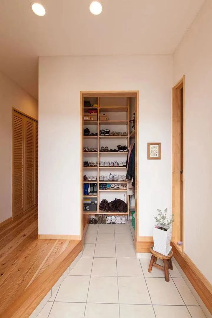 日式“土间”,类似咱们常说的储物间或者杂物间,一般在入户的位置,经常与下沉式玄关搭配使用,可以完美解决入户收纳的一系列问题。