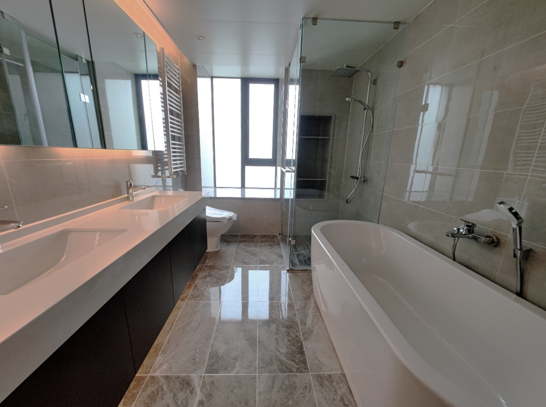 由成都优高雅精装修的成都华润二十四城8期3号楼A01户型样板房,建筑面积220㎡,含四室两厅四卫和一观景阳台、一生活阳台,是本批次精装修交付房中唯一使用装配式施工方式的样板间,也是成都优高雅首个装配式精装试点项目。样板间全屋墙面装饰、厨房、卫生间吊顶、墙面、地面部分使用装配式施工方式,配合全屋智能化家居系统,打造现代化、智能化、精致舒适的家居住宅体验。