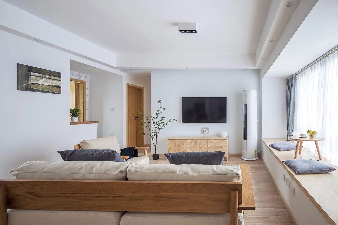 大量的木色作为空间主打基础色,以浅灰色和白色为辅助色。严谨安静的色彩,让空间展现出优雅干净之态,颇有东方禅思禅韵。虽然对墙面、地板颜色的深浅没有硬性规定,不过通常来说,清透的浅色原木家具是更安全的选择,也更适合时下小户型对明亮、轻快的审美追求。