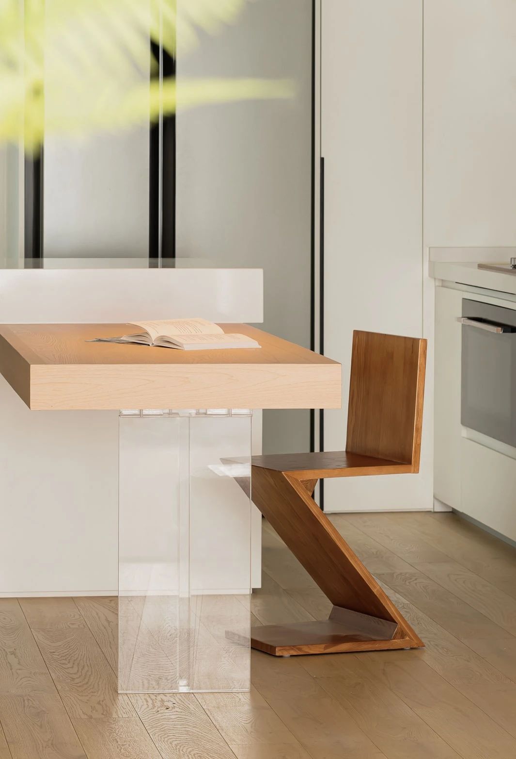 把原本单一的空间打通,变为备菜+烹饪+餐岛一体的开放式厨房,实现烹饪、储物和互动自由,嵌入式厨电解放台面空间,餐岛台一体形成洄游动线,成为互动中心。