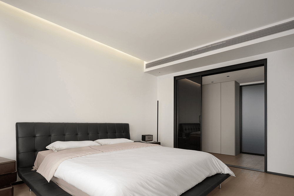 踏步而上,沿用最简单的颜色来打造极具视觉感的存在,是简单亦是品位。几乎全屋都是无主灯的照明设计,符合年轻人的居家定位。黑色百叶帘的搭配注重年轻简约,摈弃窗帘的庄重和传统,带来更新颖的居家风格。